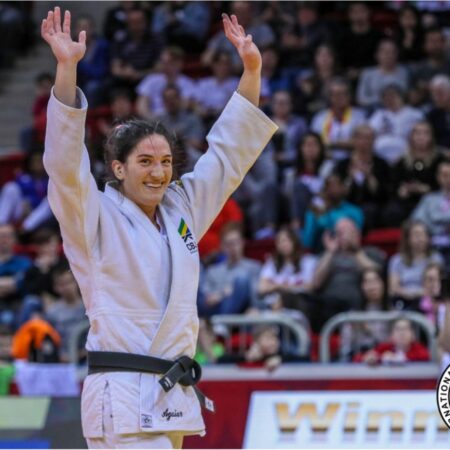 O site da CBJ destaca que, em Tbilisi, “a gaúcha de Santa Maria” venceu cinco combates para conquistar seu terceiro título de Grande Slam.