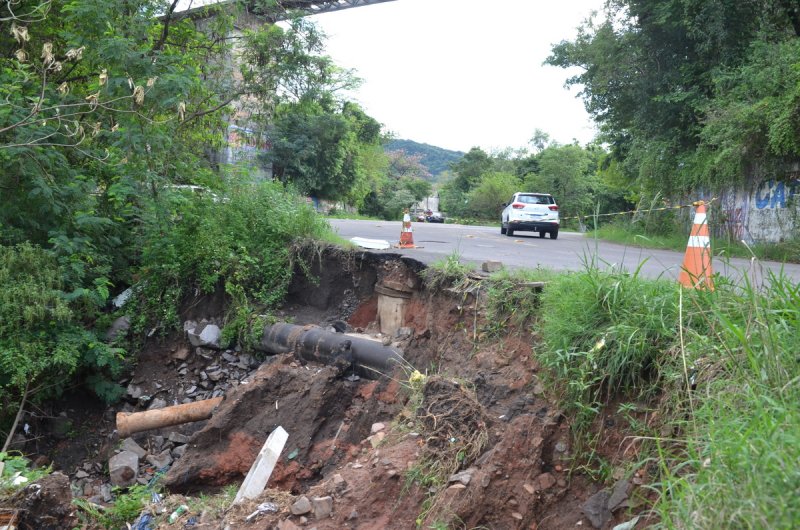 Parte do asfalto da Rua Fernandes Vieira, após a ponte seca, em direção ao Bairro Carolina, cedeu com a força da água. A Secretaria de Mobilidade Urbana teve que sinalizar a via com fitas e cones para garantir a segurança de motoristas. A Corsan fez uma vistoria para avaliar a situação do local.