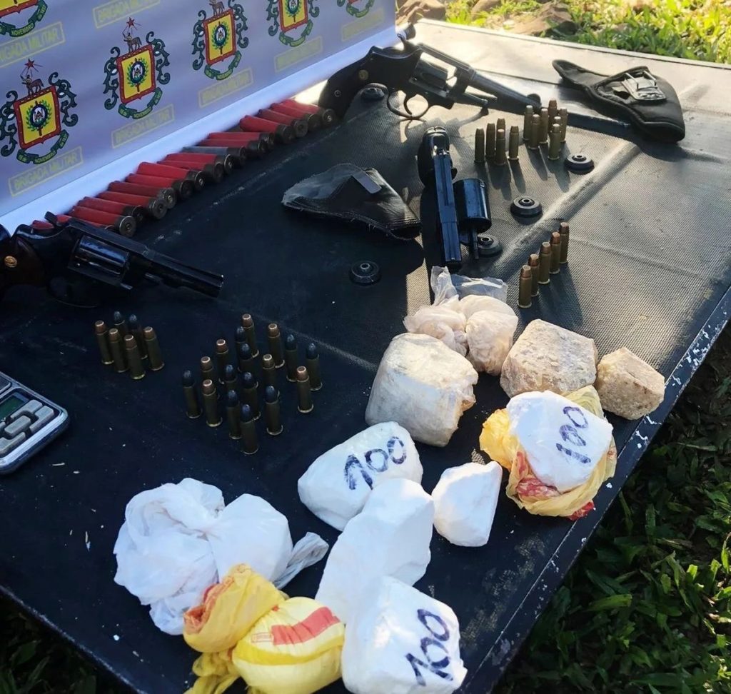 Os policiais cumpriram quatro mandados de busca e apreensão em quatro residências na cidade e prenderam suspeitos de 25, 27 e 39 anos. Nas residências a BM apreendeu três revólveres calibres .38, 45 munições intactas de arma calibre .38, 17 cartuchos de munições calibre 12 deflagrados, quatro facas e um punhal.