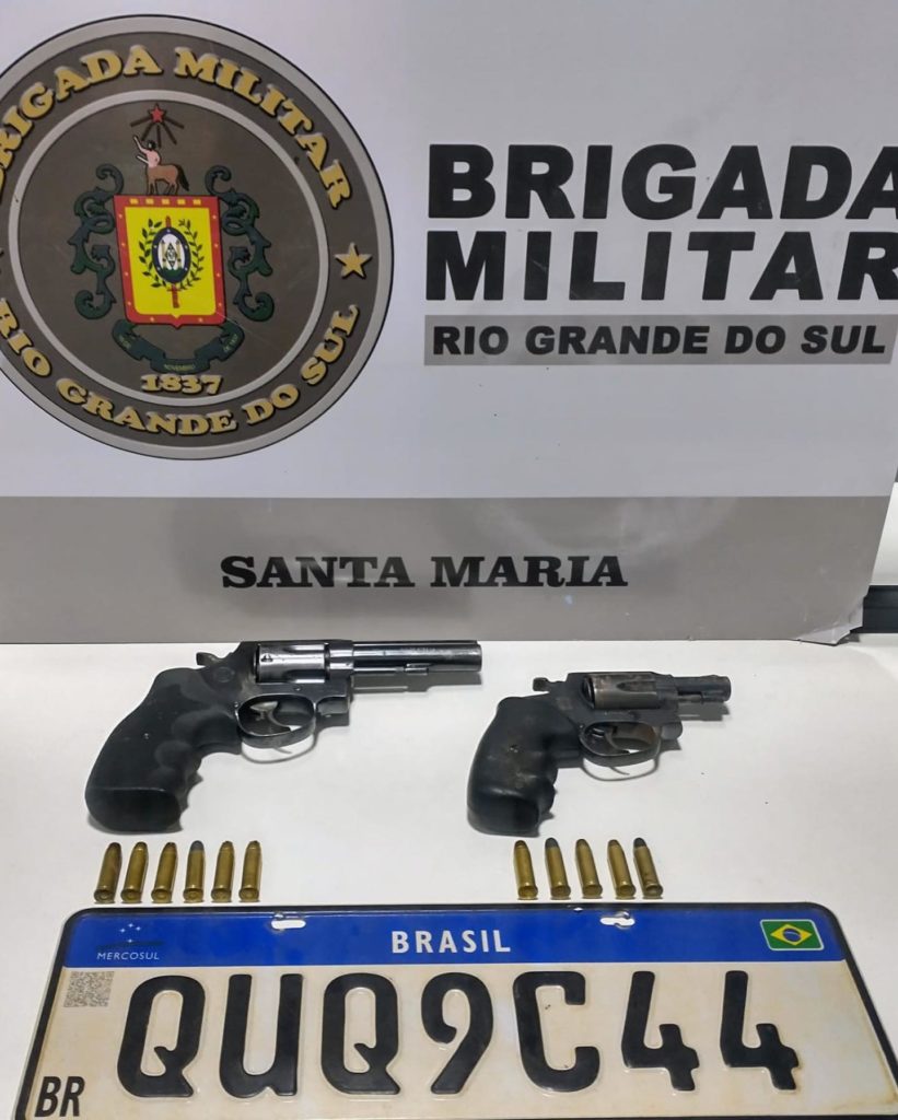 No local, a Brigada Militar recolheu dois revólveres calibre 38, que estariam com a dupla, que ocupava um Corolla com placas de um Cruze.