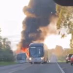 Ônibus da Expresso São Pedro pega fogo na BR-287, em Santa Maria