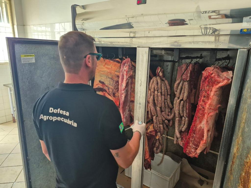 No açougue, no Centro da cidade, os agentes recolheram 1,8 tonelada de produtos. Os fiscais encontraram carne sem procedência, inclusive com presença de pelos de animal, evidenciando a ausência de abate adequado.