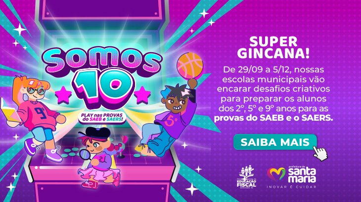 A Prefeitura, por meio das secretarias de Educação e da Fazenda – pelo Programa Municipal de Educação Fiscal (PMEF) -, lança a Gincana Somos 10, que tem o intuito de promover desafios criativos para engajar os estudantes da Rede Municipal de Ensino (RME) para provas externas de avaliação que ocorrem em outubro e em novembro.