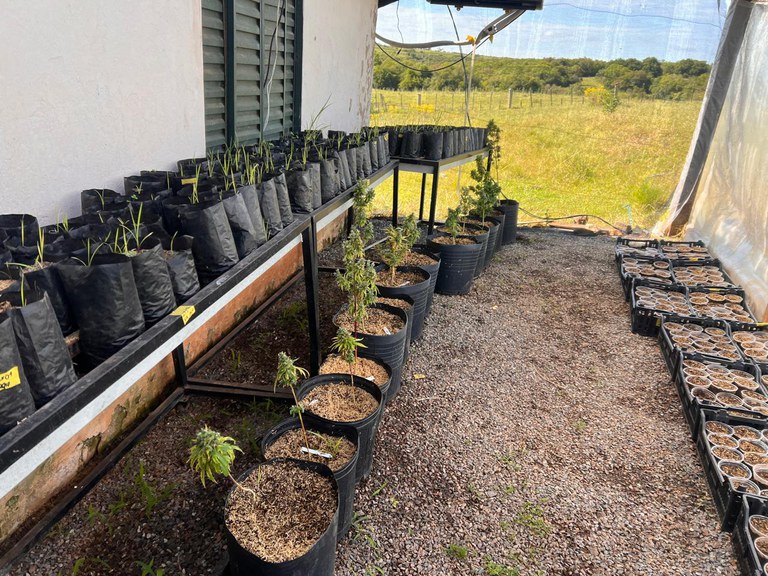 Conforme os levantamentos, a plantação possuía centenas de pés de cannabis, organizados em diferentes estágios de crescimento.