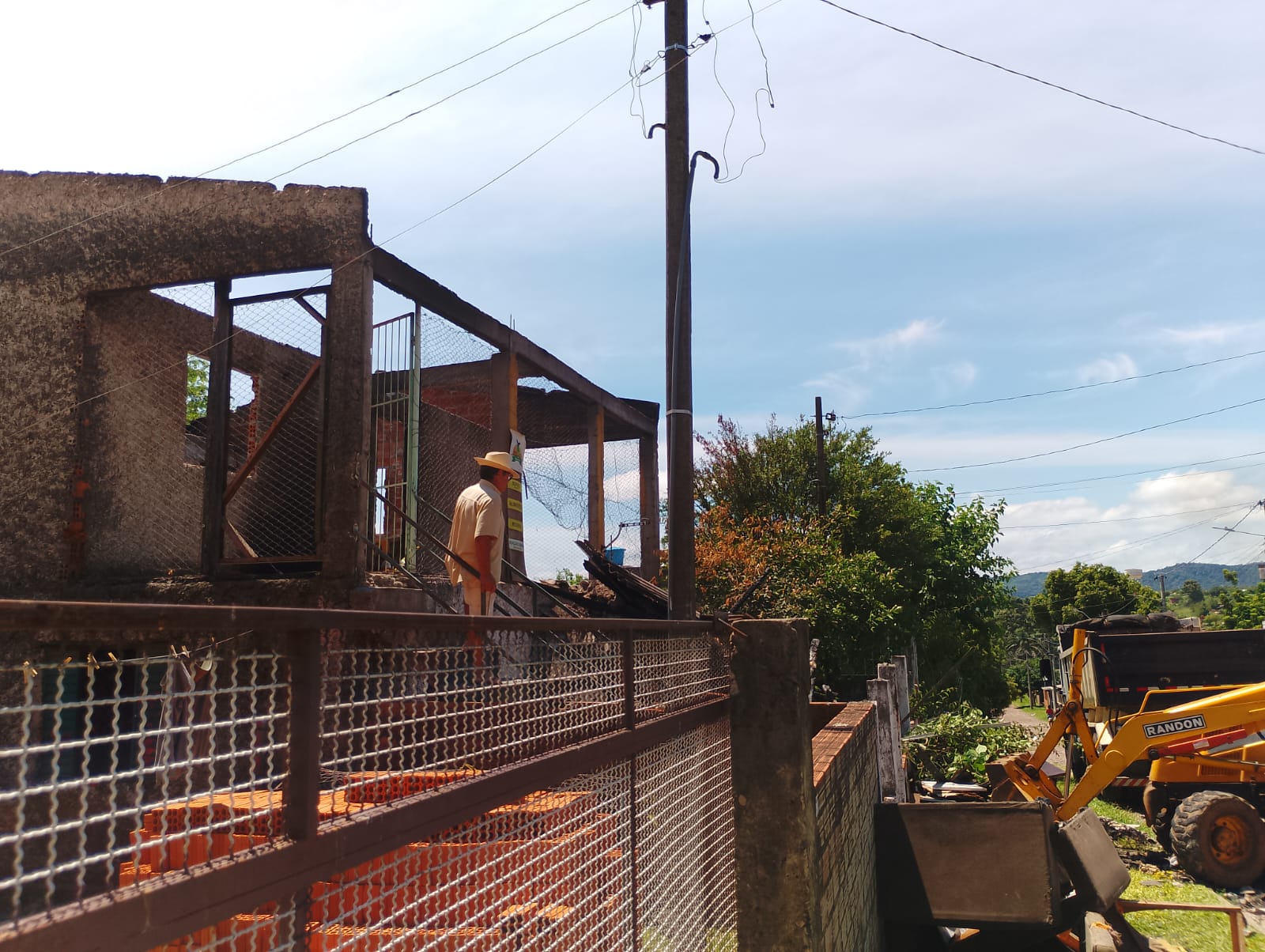 Nesta quinta-feira (8/1), os entulhos que sobraram da casa incendiada estão sendo retirados para que possa ser possível a reconstrução com a ajuda da comunidade.