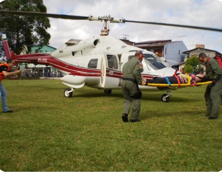 Helicóptero pousará e decolará do heliporto no prédio do Hospital de...