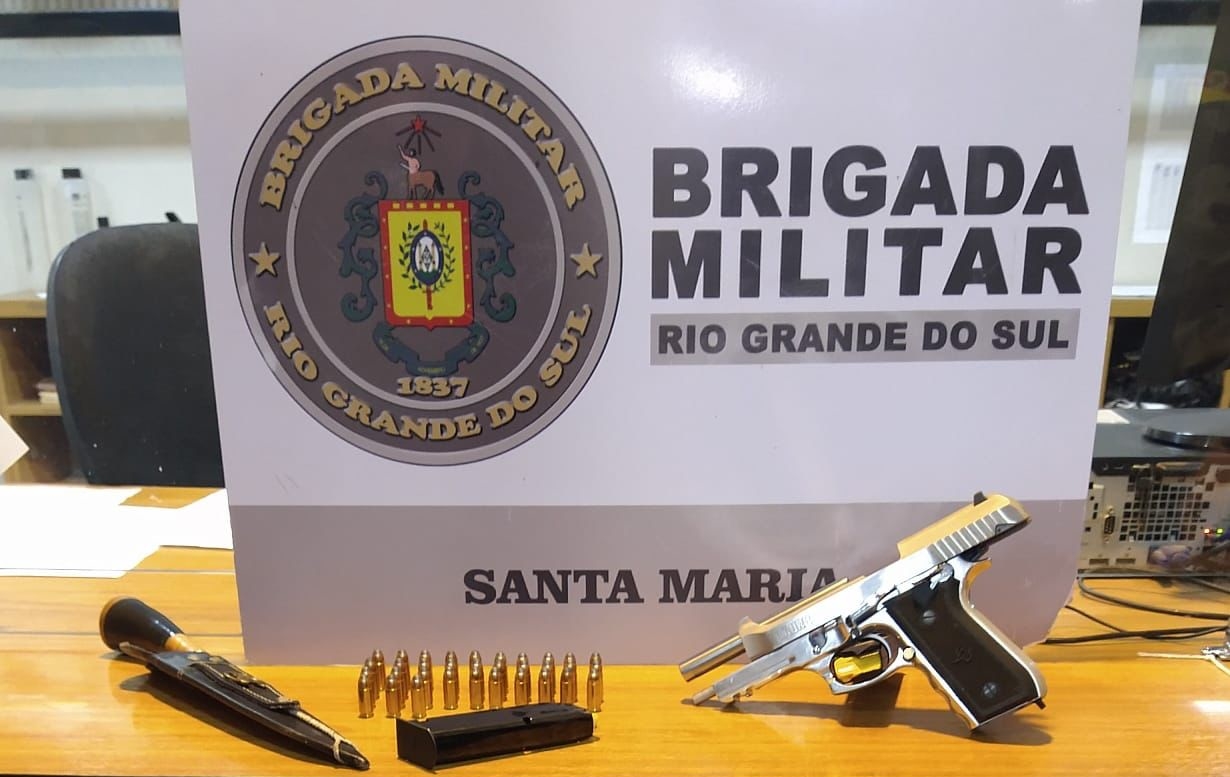 PMs apreenderam pistola 9mm carregada com seis munições e com dois...