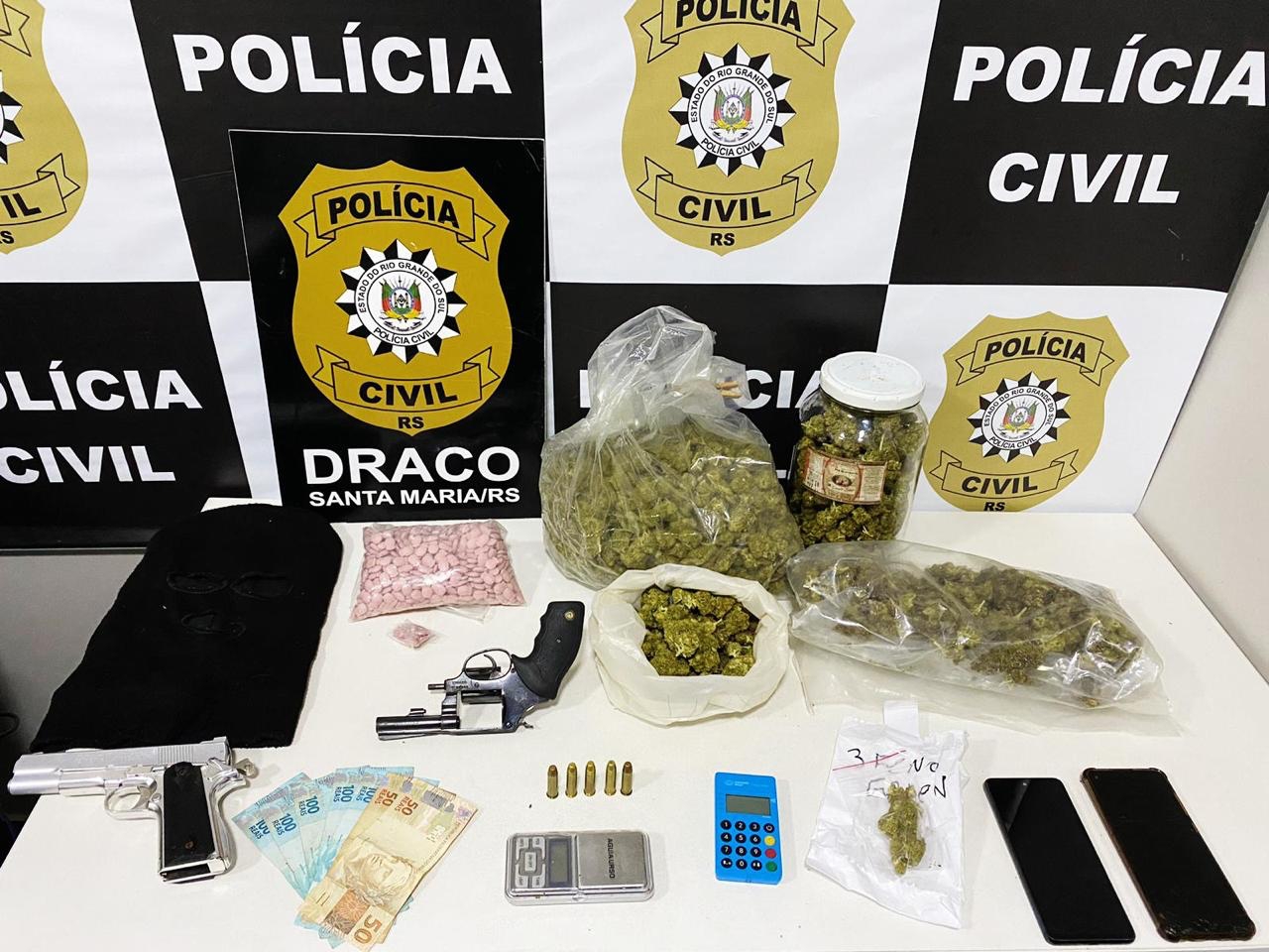 Suspeito de tráfico também tinha celulares, revólver, munição e dinheiro...